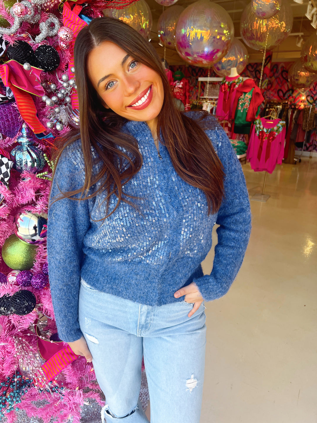 Blue Tweed Headband with Hot Pink Crystals & Pearls
