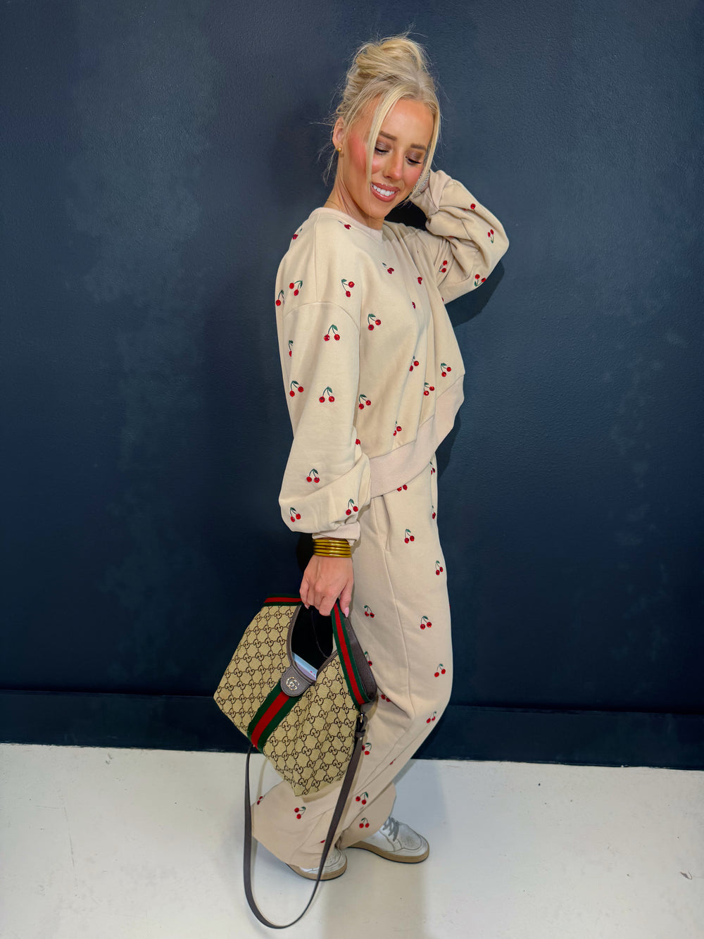 QOS Tan Jeweled Cherry Sweatpant