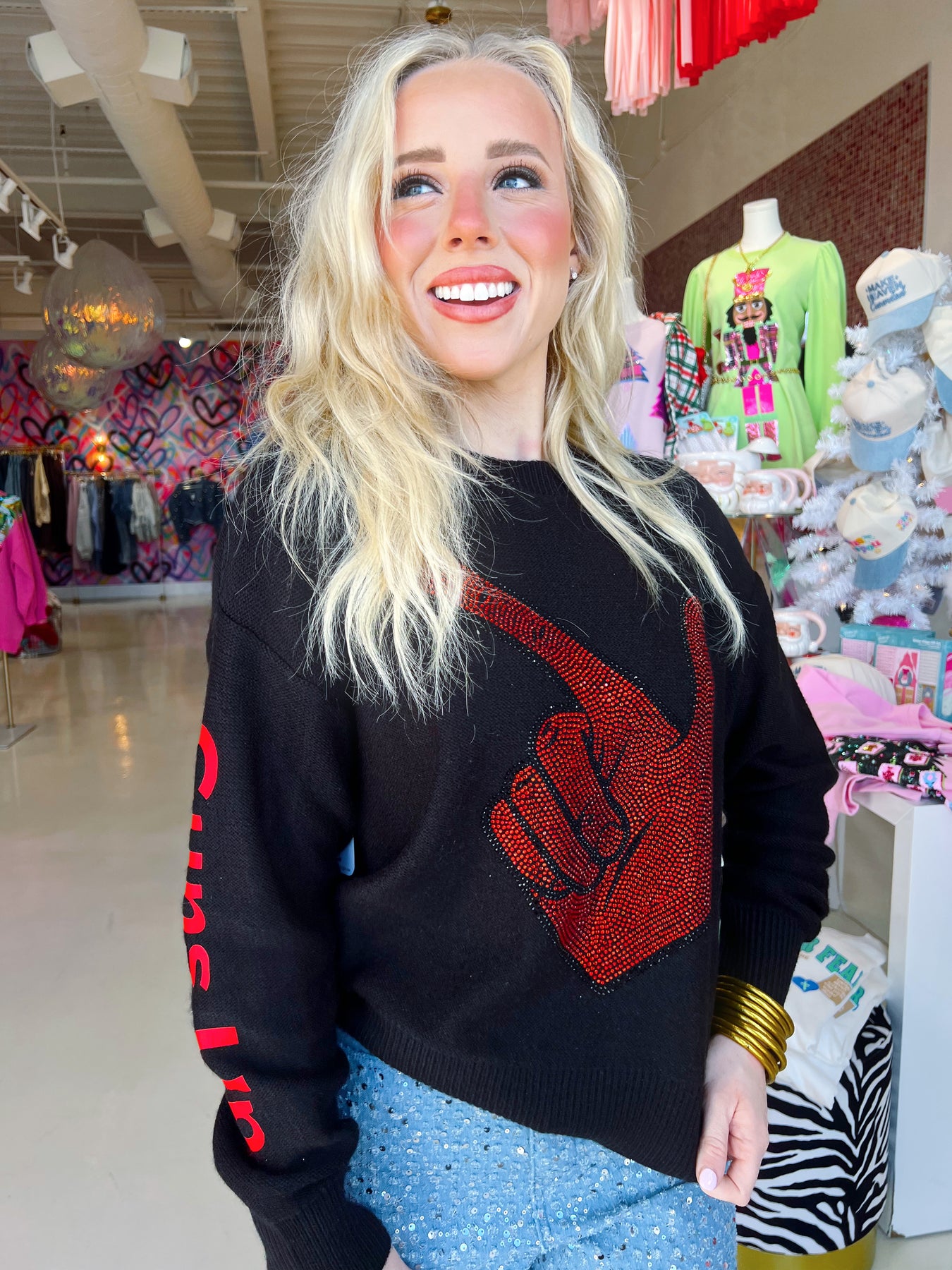 Guns Up Rhinestone Sweater