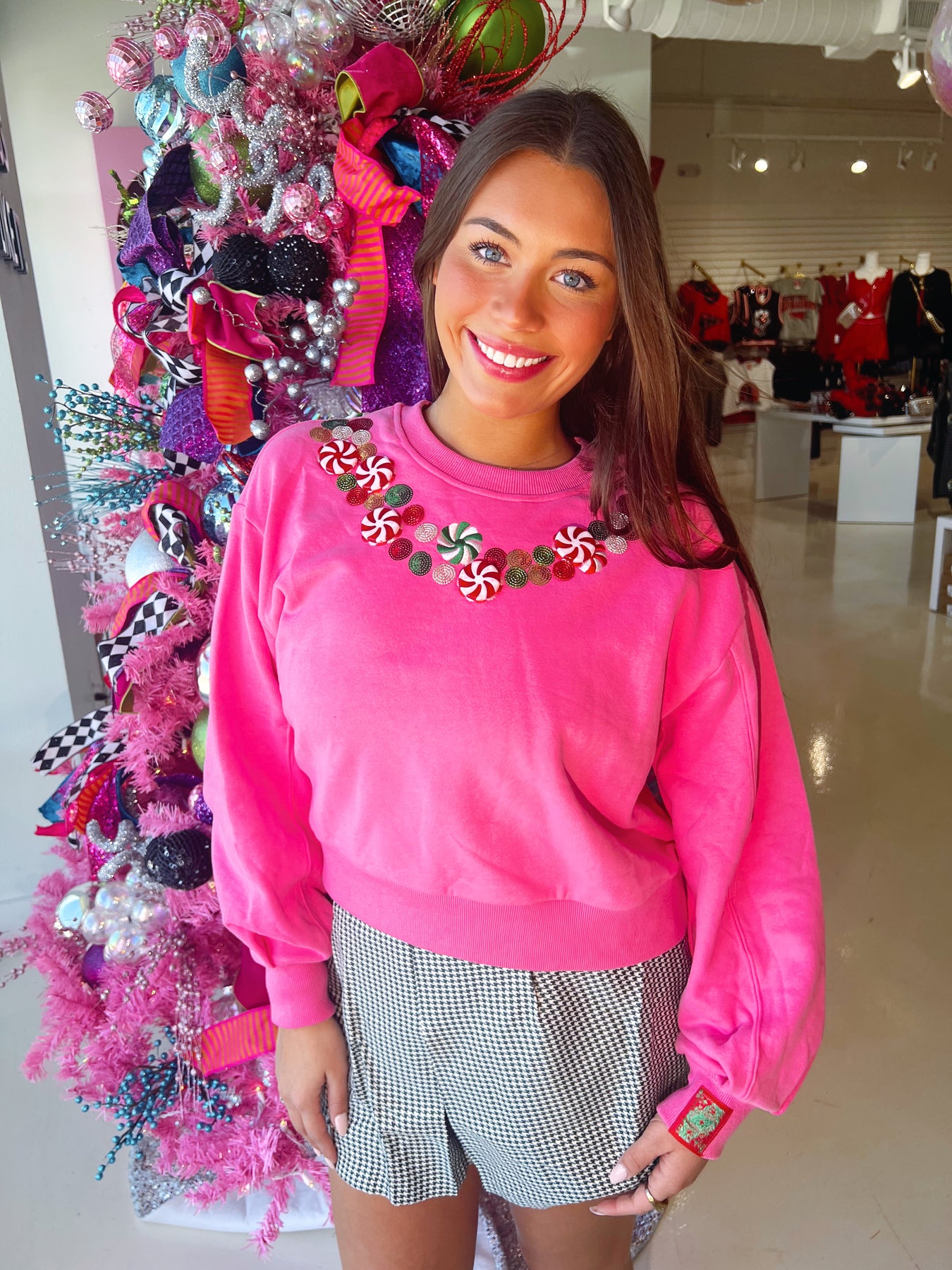 QOS Hot Pink Peppermint Neck Sweatshirt